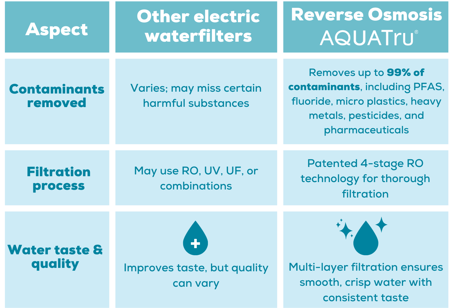 - Limited thoroughness: Some systems may not remove the wide range of contaminants that AquaTru's 4-stage RO system can.