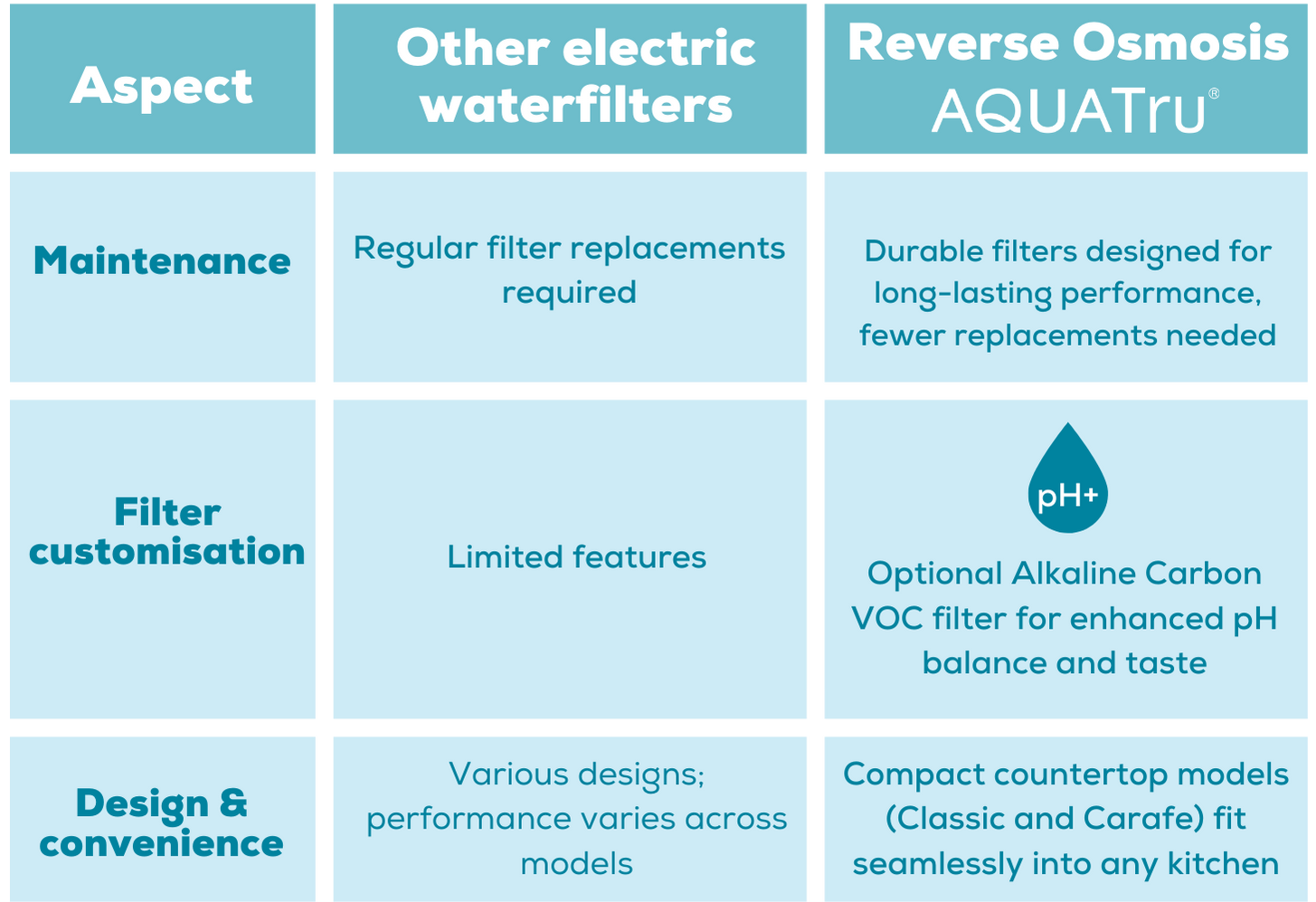 Key benefits of AquaTru's RO filters:
