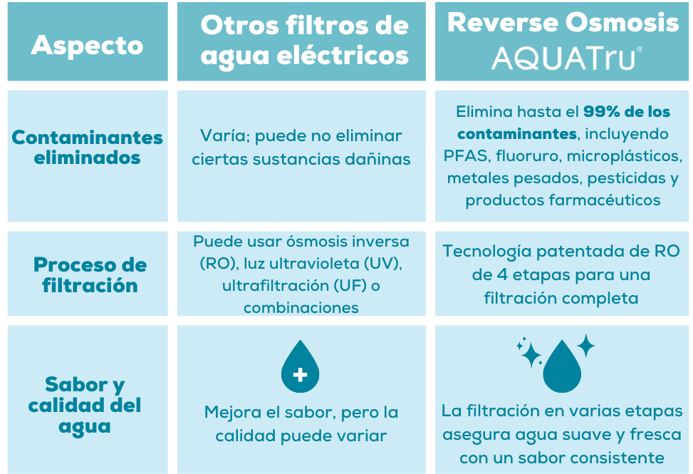 AquaTru vs. otros filtros de agua eléctricos: ¿Cómo se comparan?
