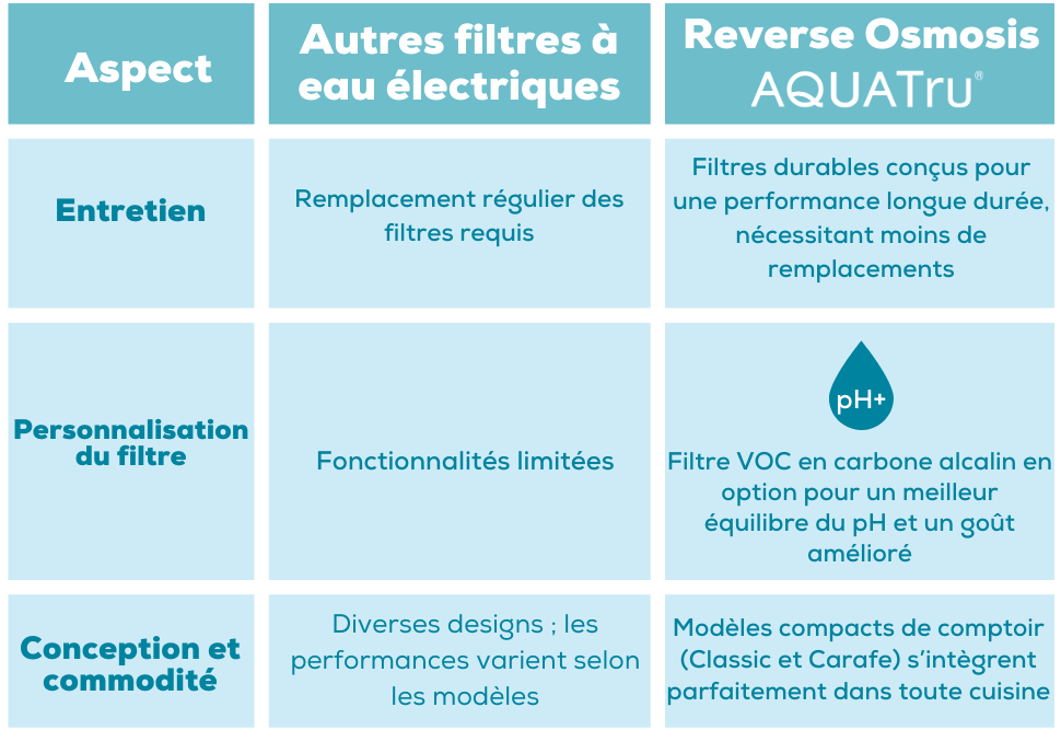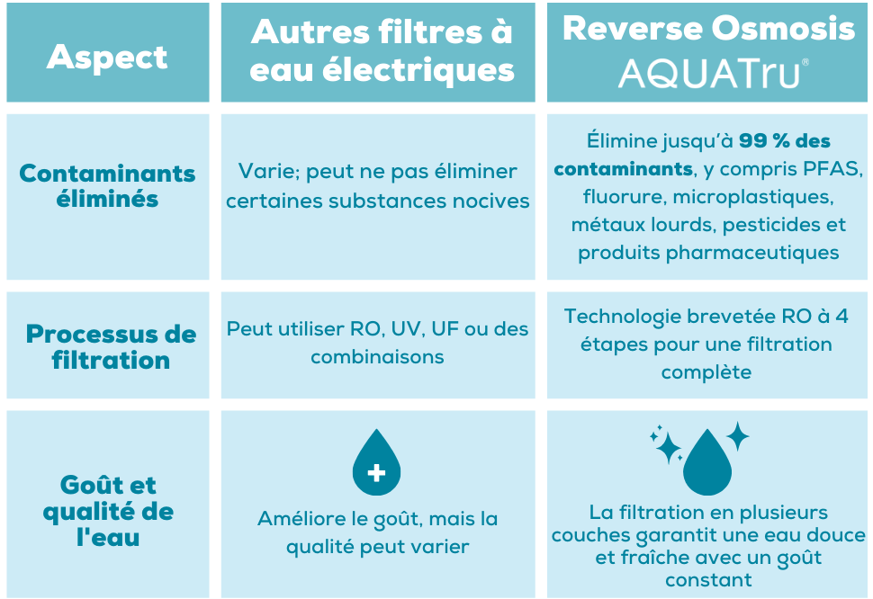 AquaTru vs. autres filtres d'eau électriques : Comment se comparent-ils ?