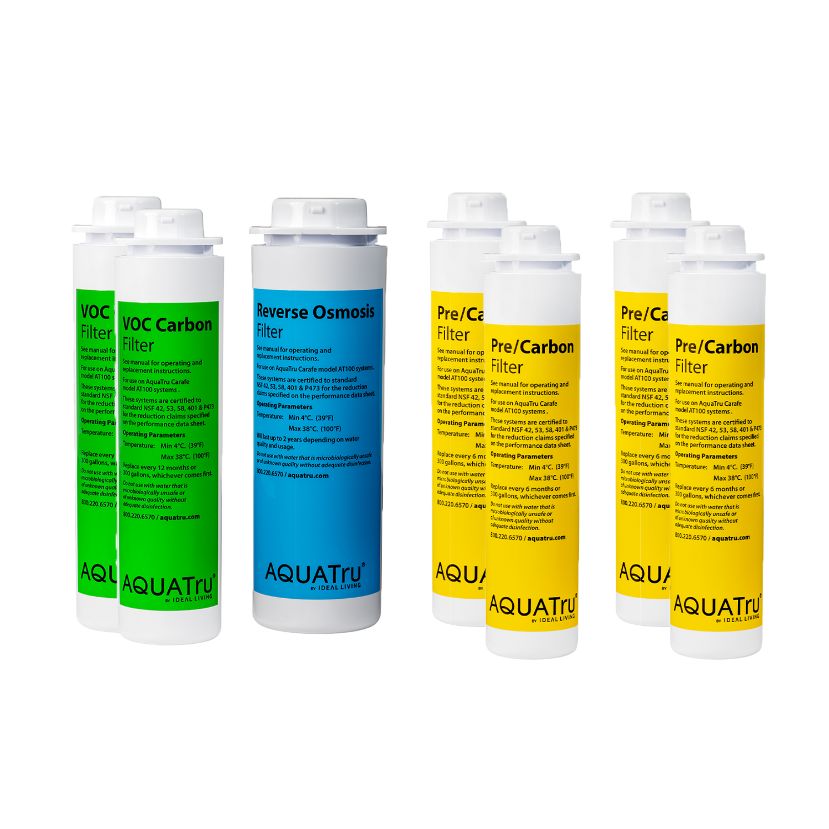 Économisez jusqu'à 50 € en achetant un pack de filtres d'un an ou de deux ans pour votre système AquaTru. Ces packs contiennent tout ce dont vous avez besoin pour une eau pure et constante toute l'année. En achetant un lot, vous économisez non seulement de l'argent, mais vous vous assurez également d'avoir toujours les bons filtres à portée de main lorsque votre appareil signale qu'il est temps de les remplacer. Investir dans un pack garantit des performances optimales et une qualité d'eau à long terme. Consultez nos packs ci-dessous et choisissez l'option qui vous convient le mieux !