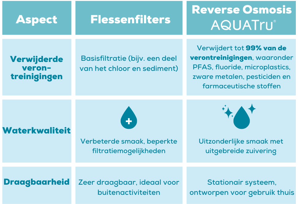 AquaTru vs. Flesfilters: De juiste waterfiltratie voor jou